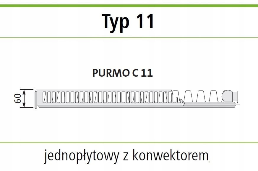 Opis:Purmo Compact to stalowe grzejniki płytowe z bocznym podłączeniem do instalacji. Stanowią idealne wyposażenie domowej instalacji grzewczej. Te pokojowe grzejniki polecane są jako urządzenia grzewcze montowane w sypialniach, pokojach dziennych, kuchniach. Montaż jest możliwy zarówno na ścianie jako grzejniki wiszące, opcjonalnie można uzyskać grzejniki stojące montując je na podłodze na specjalnych stojakach.Pokojowe grzejniki Purmo posiadają powierzchnie boczne obudowane osłonami oraz powierzchnię górną przykrytą osłoną typu grill. Dostępne są w szerokim zakresie typów i rozmiarów, dlatego łatwo dobrać grzejnik do pomieszczenia każdej wielkości. Grzejniki typu C wyposażone są w cztery boczne otwory przyłączeniowe w każdym narożniku grzejnika z gwintem wewnętrznym 1/2?.