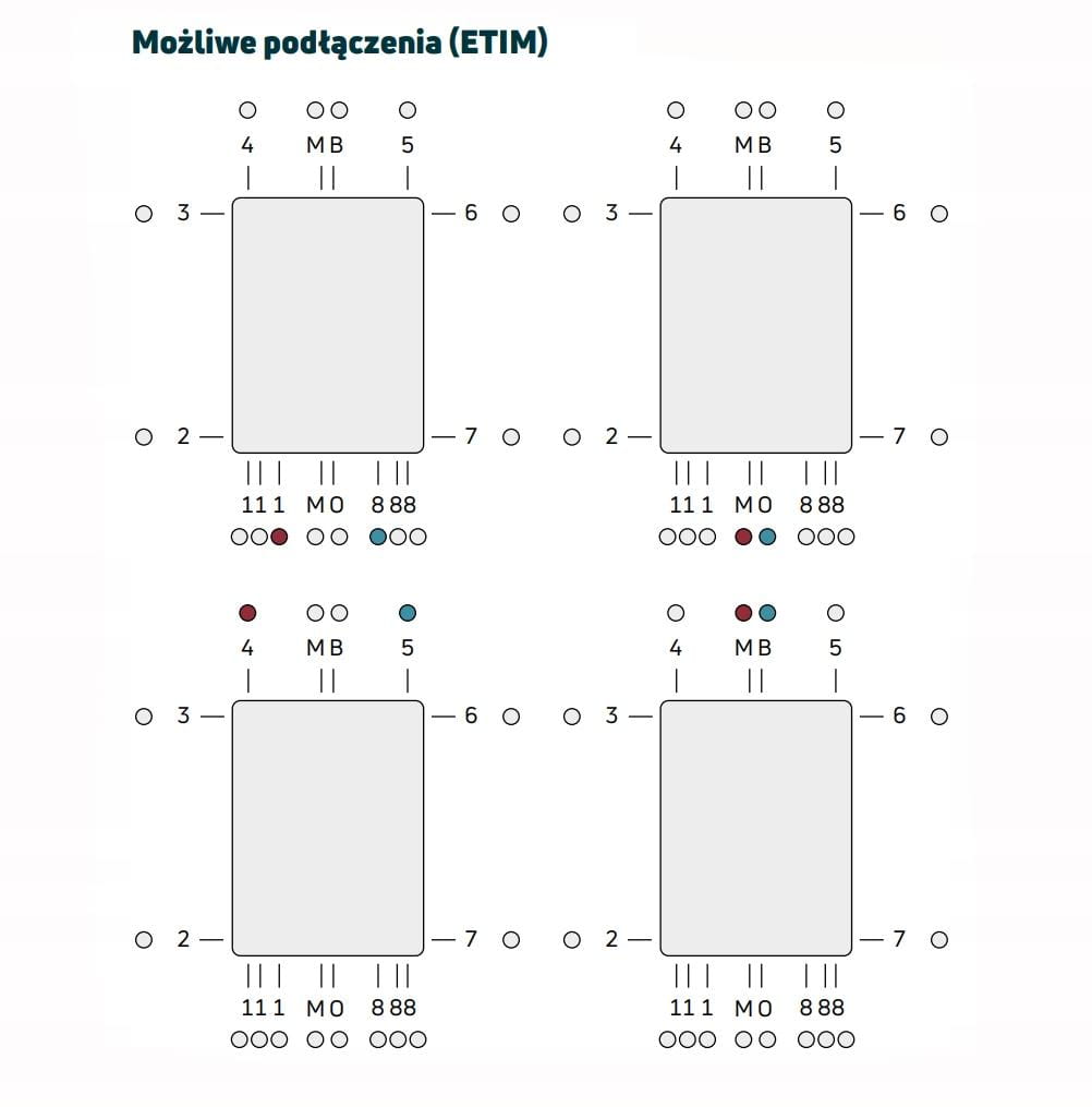 Sposób podłączenia : dolne środkowe